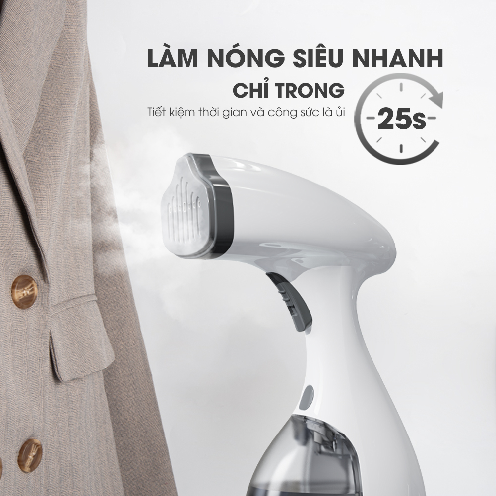 - Cắm điện và chờ bàn là hơi nước cầm tay tạo hơi nước trong 25 giây.