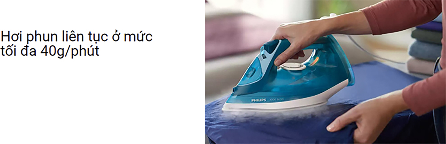 Đặc điểm nổi bật bàn ủi hơi nước Philips DST3030/70 - Công suất 2000W, làm nóng nhanh, ủi phẳng hiệu quả. - Hơi phun liên tục 30 g/phút, hơi phun tăng cường 100 g giúp