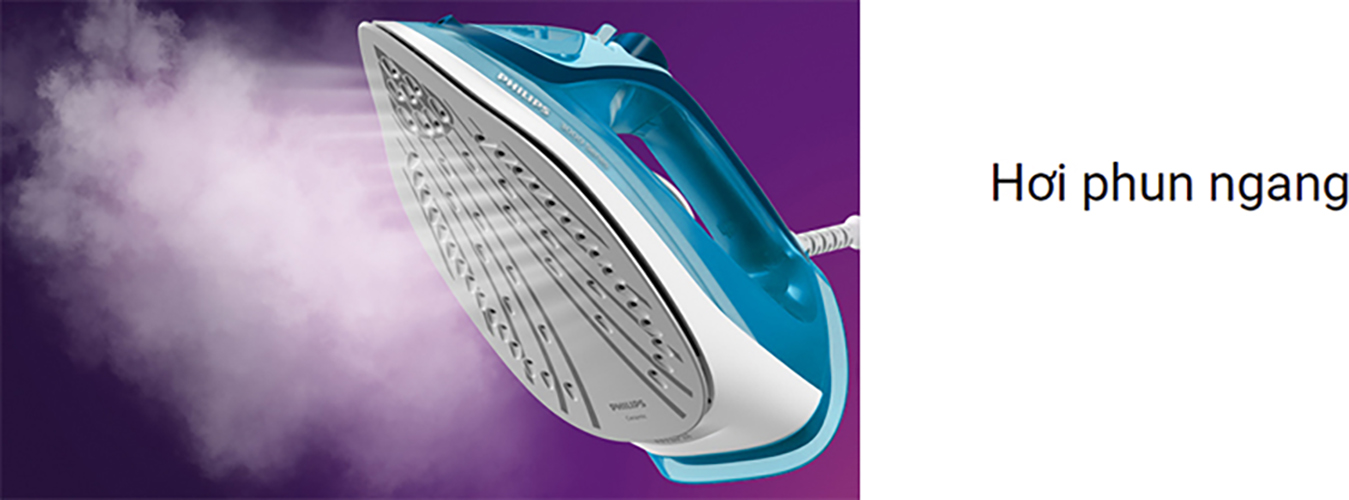 - Hơi phun tăng cường 200 g/phút cung cấp thêm công suất để hơi phun thấm sâu hơn vào vải và dễ dàng ủi phẳng những nếp nhăn khó ủi nhất. Khi phun hơi liên tục ở mức tối đa là 40 g/phút giúp hơi phun đầu ra mạnh và đều giúp làm phẳng các nếp nhăn nhanh hơn. Tiện ích và tính năng an toàn