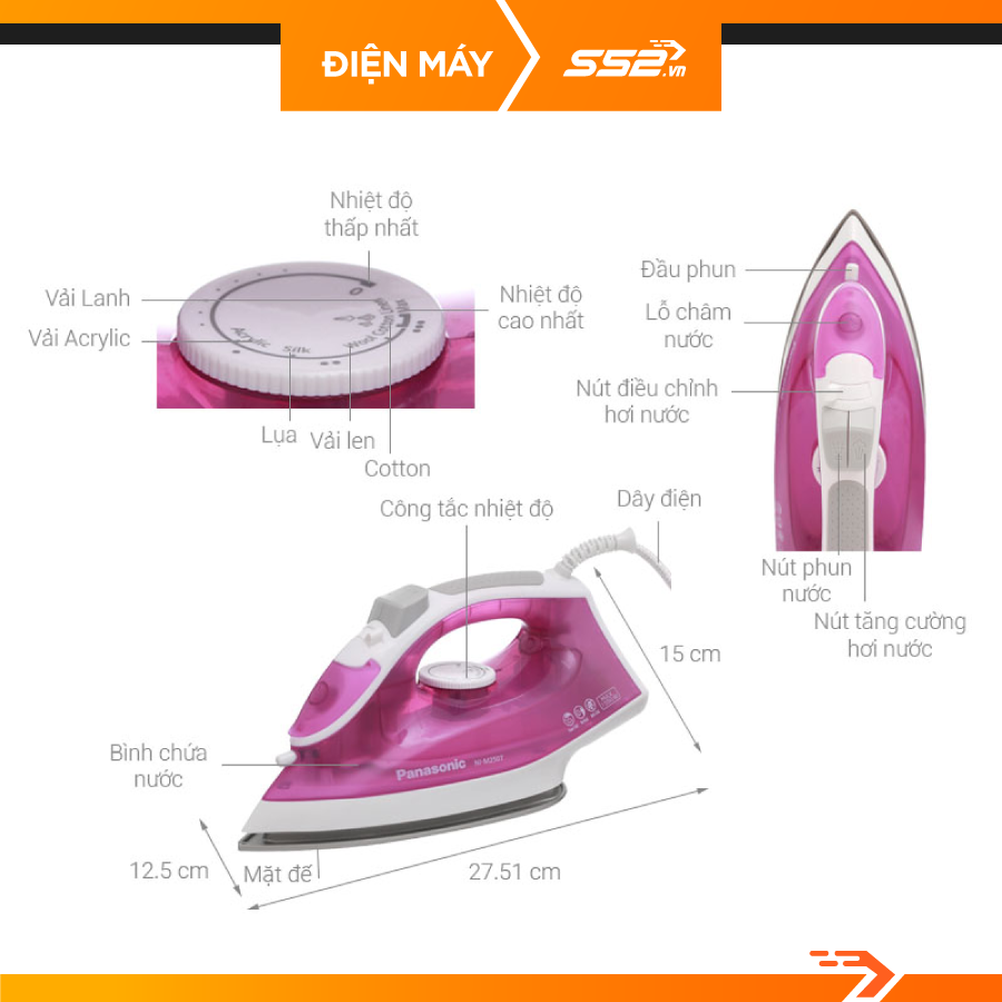 Bàn ủi hơi nước Pansonic NI-M250TPRA, bàn là giá rẻ tốt nhất cho gia đình