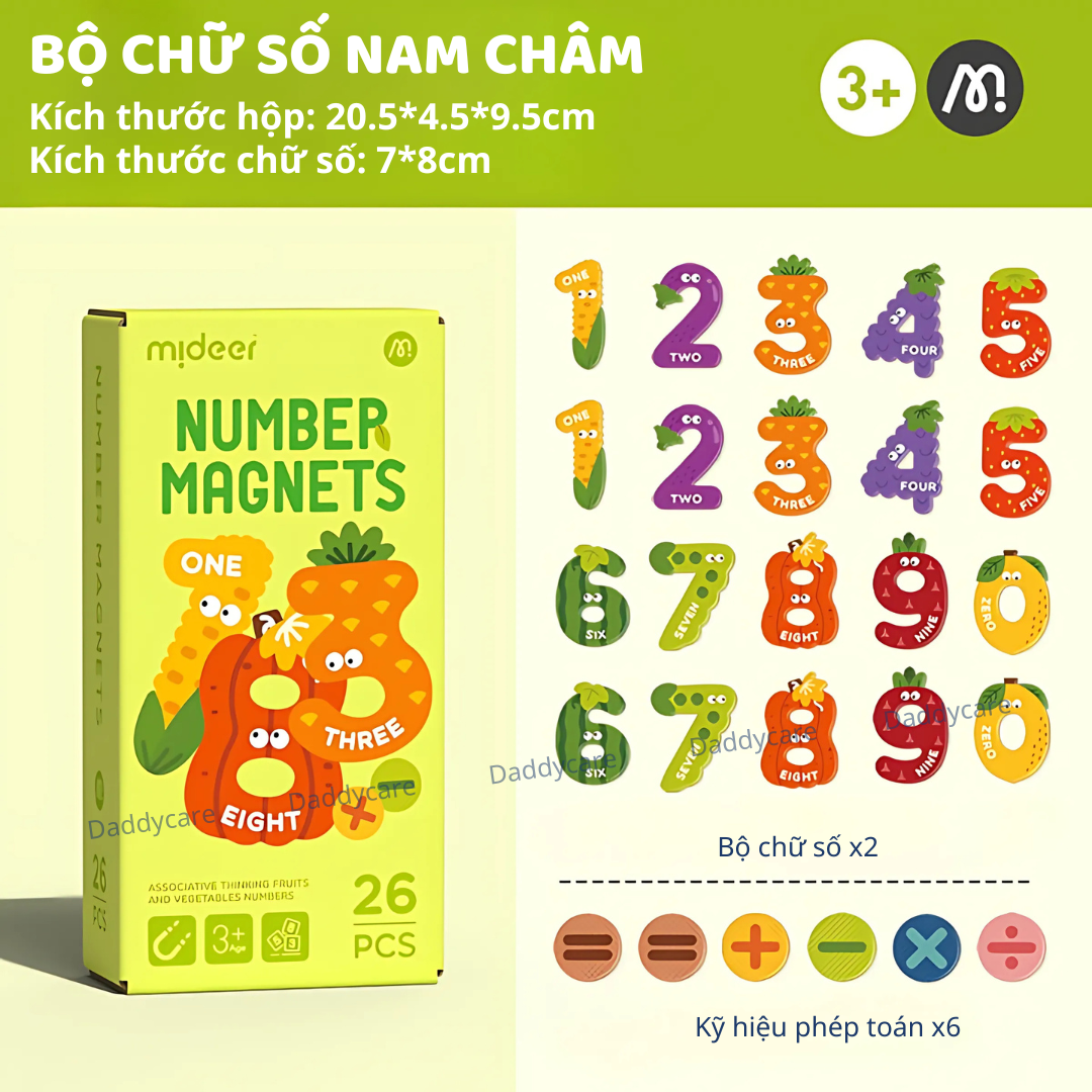 Đồ chơi giáo dục – Bộ chữ cái / Bộ chữ số nam châm hình con vật, trái cây, rau củ chính hãng MIDEER Thông tin sản phẩm: - Kích thước sản phẩm: 20.5 x