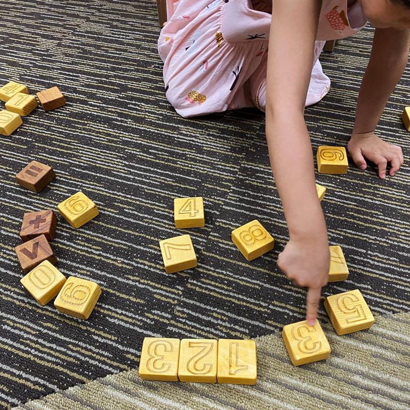 MÔ TẢ SẢN PHẨM Vật liệu: 100% gỗ tự nhiên an toàn cho bé :Gỗ thông, gỗ gõ đỏ, gỗ tần bì, … Kích thước bộ chữ cái: 4cm x 4cm x 2cm ( 26 miếng) Kích thước bộ số: 4cm x 4cm x 2cm (27 miếng), bao gồm 20 số và 7 dấu cơ bản Độ tuổi: Phù hợp cho các bé từ 1 tuổi trở lên