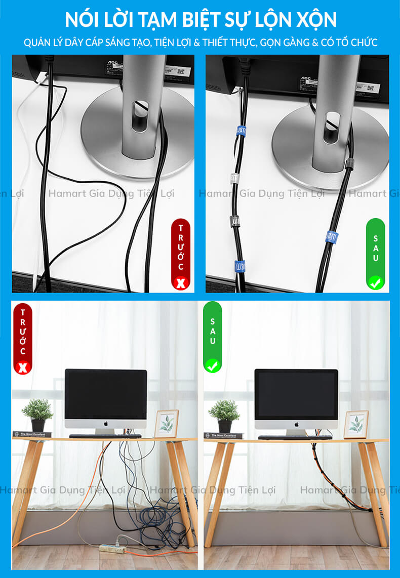 - Cố định hiệu quả với băng dán thu gọn dây tiện ích, giúp cho không gian nhà hay văn phòng thêm gọn gàng, ngăn nắp.