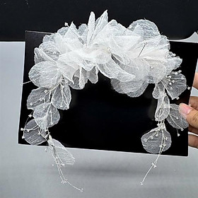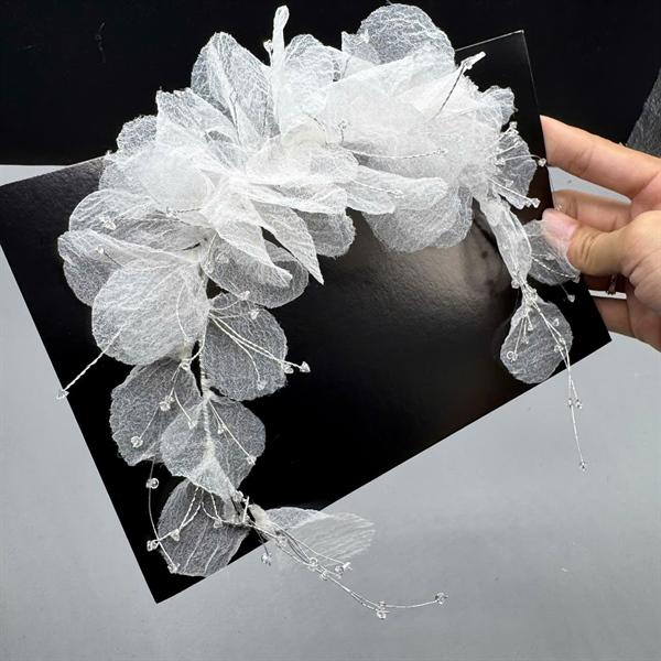 ✨Băng đô cài tóc cô dâu hoa voan mềm trắng vân mây