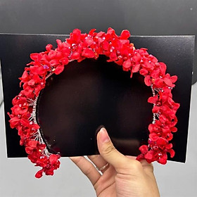 ✨Băng đô cài tóc hoa nhí đỏ đính hạt pha lê mẫu mới