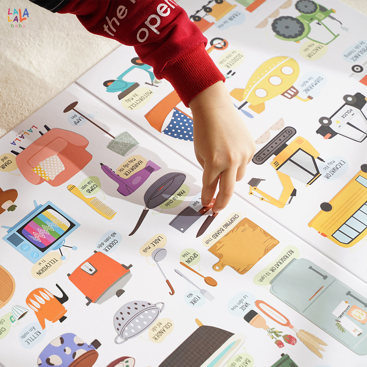 Mỗi một phân loại đều được lồng ghép các nội dung có sự liên quan tới nhau ở 6 mặt bảng. Bé chỉ cần thao tác lật, mở, cả thế giới kỳ thú như hiện ra ngay trước mắt bé.