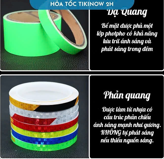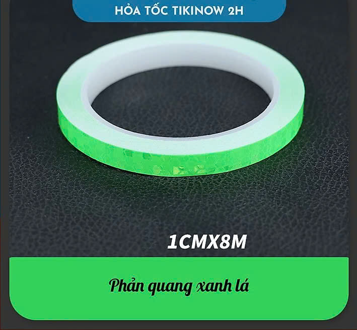 - Băng keo phản quang chống nước, có thể dùng ngoài trời, dán ngoại thất oto. Băng keo dạ quang chỉ nên sử dụng trong nhà. Kích thước: kích thước được ghi ở phần chọn sản phẩm. Ví dụ 1cm*8m nghĩa là băng keo có bề ngang rộng 1cm, dài tổng cộng 8m.