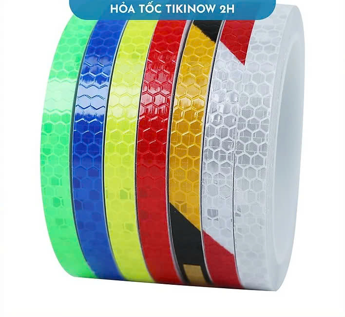 Băng keo Phản Quang: là loại keo phản chiếu mạnh khi có ánh sáng chiếu vào. Ứng dụng để dán ngoại thất oto, xe máy, xe đạp, dán lên quần áo phụ kiện để đi