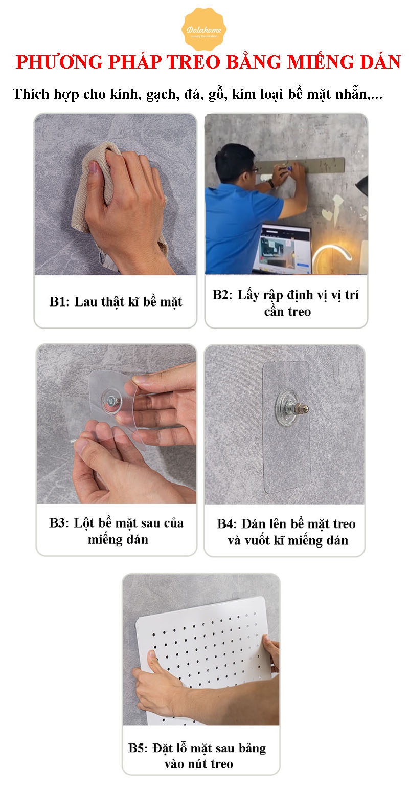 - Nên sử dụng miếng dán ở bề mặt: + Kính, gạch, gỗ, đá, acrylic, mica, các bề mặt không bị bong tróc sơn.