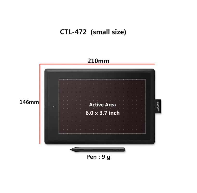 Bảng Vẽ Đồ Họa Cảm Ứng One By Wacom CTL-472 Với Bút Vẽ LP-190K 2048 Mức Lực Nhấn Bảng vẽ Intuos CTL-472: vùng hoạt động 6.0 x 3.7 in Độ phân giải 2540 lpi Độ