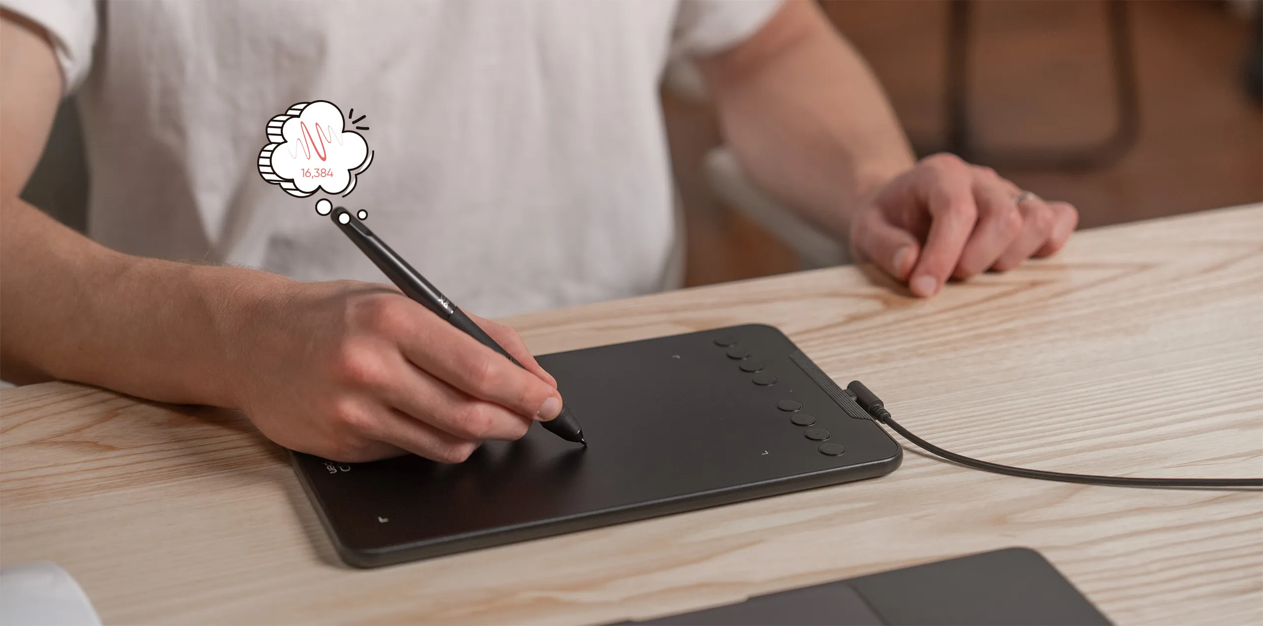 Bút cảm ứng hỗ trợ đến 16384 mức lực nhấn, cho phép bạn đi nét tự nhiên, tinh tế với nhiều độ dày mảnh khác nhau.
