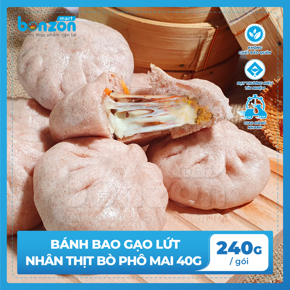 ✨Bánh bao gạo lứt nhân thịt bò phô mai bamboo 40g - Bonzon (240g)