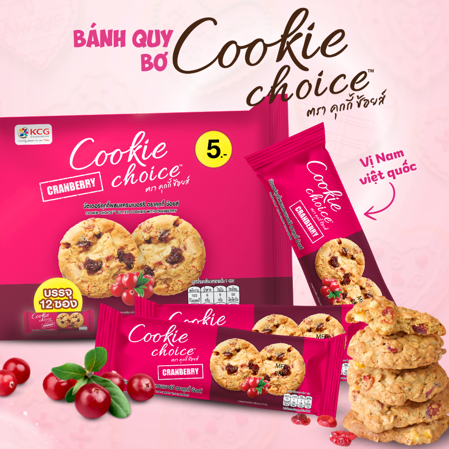 - Sản xuất tại Thái Lan – Đảm bảo tiêu chuẩn chất lượng an toàn thực phẩm. TẠI SAO NÊN CHỌN BÁNH QUY BƠ COOKIE CHOICE?