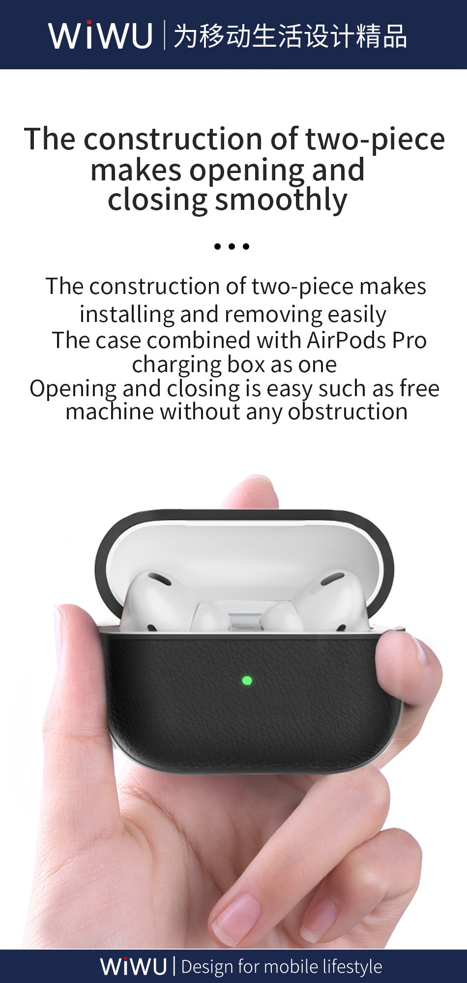 - Ốp da WIWU calfskin genius leather cho airpod được làm bộ khung bên trong bằng nhựa dẻo và bao bọc bên ngoài 1 lớp da sang trọng , thiết kế khít đến từng chi tiết , vừa vặn với chiếc airpods