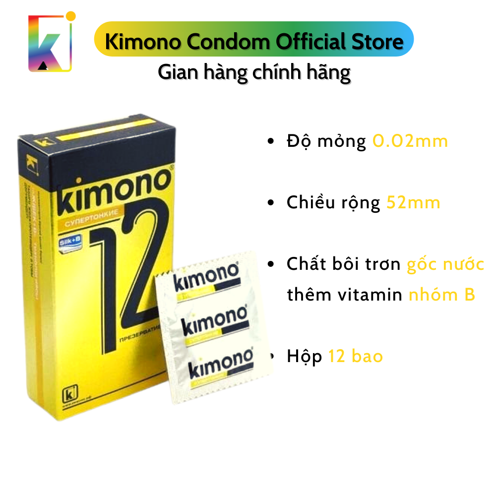 ✨Bao Cao Su Kimono Gold Siêu Mỏng 0.02mm – Bôi Trơn Gốc Nước – Cảm Giác Chân Thật – Hộp 12 Chiếc
