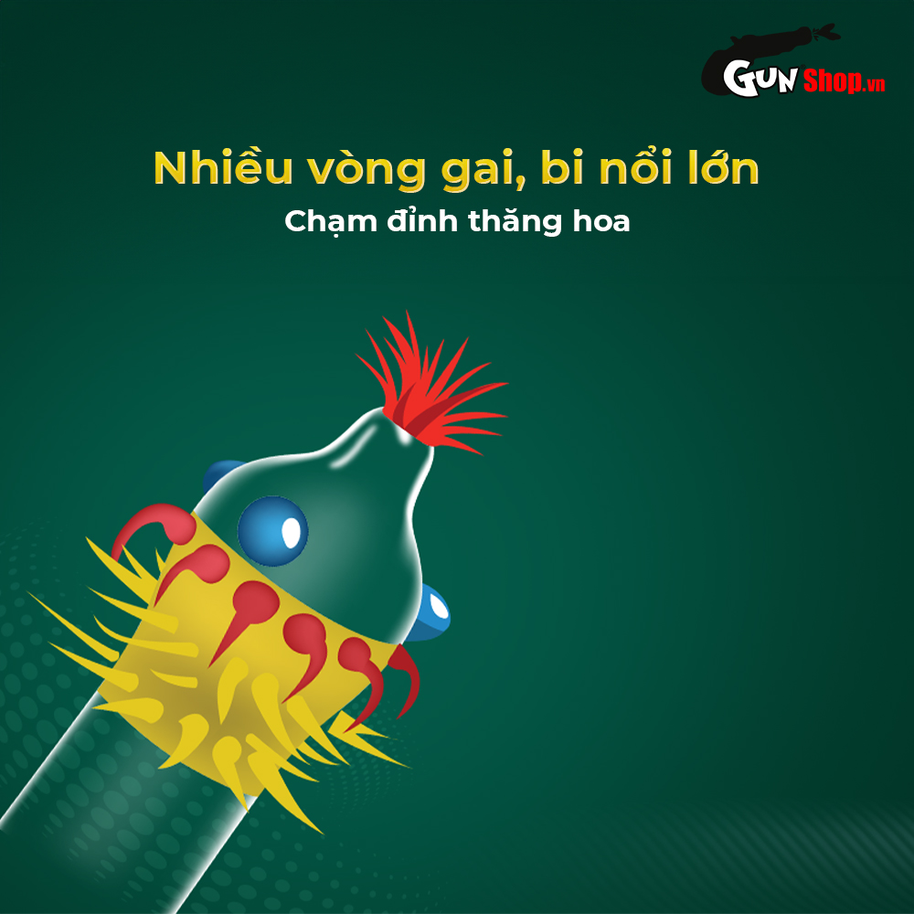 ✪ Đặc điểm: Với 1 chiếc bao cao su Shell Dino T-rex nhiều vòng gai, bi nổi lớn siêu kích thích + 1 chiếc bao cao su Shell Performax kéo dài, gân gai.