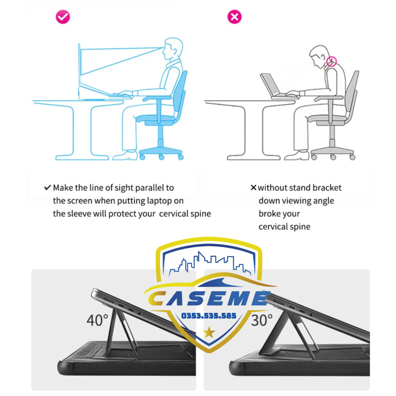 Tích hợp chức năng đứng thông minh: Gập đứng dễ dàng giúp nâng máy tính lên, giảm áp lực cổ và vai khi làm việc lâu.
