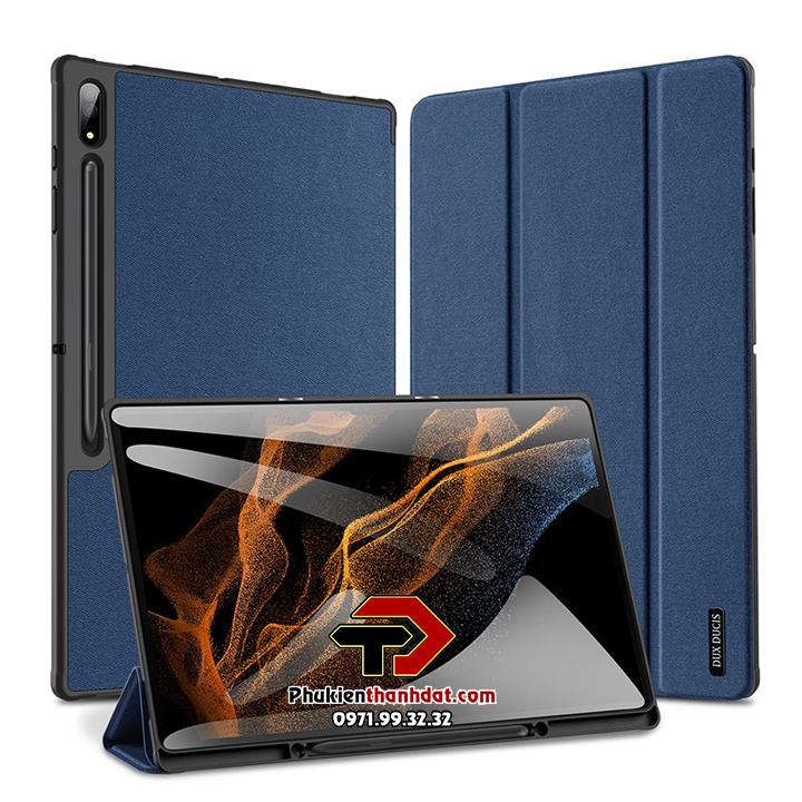 Phần lưng bao da Galaxy Tab S8 Ultra có khay đựng bút chính hãng Dux Ducis Domo được thiết kế những ô tổ ong giúp tản nhiệt tốt, không nóng máy. Dựng máy nhiều tư thế. Mẫu bao da có nhiều màu sắc.