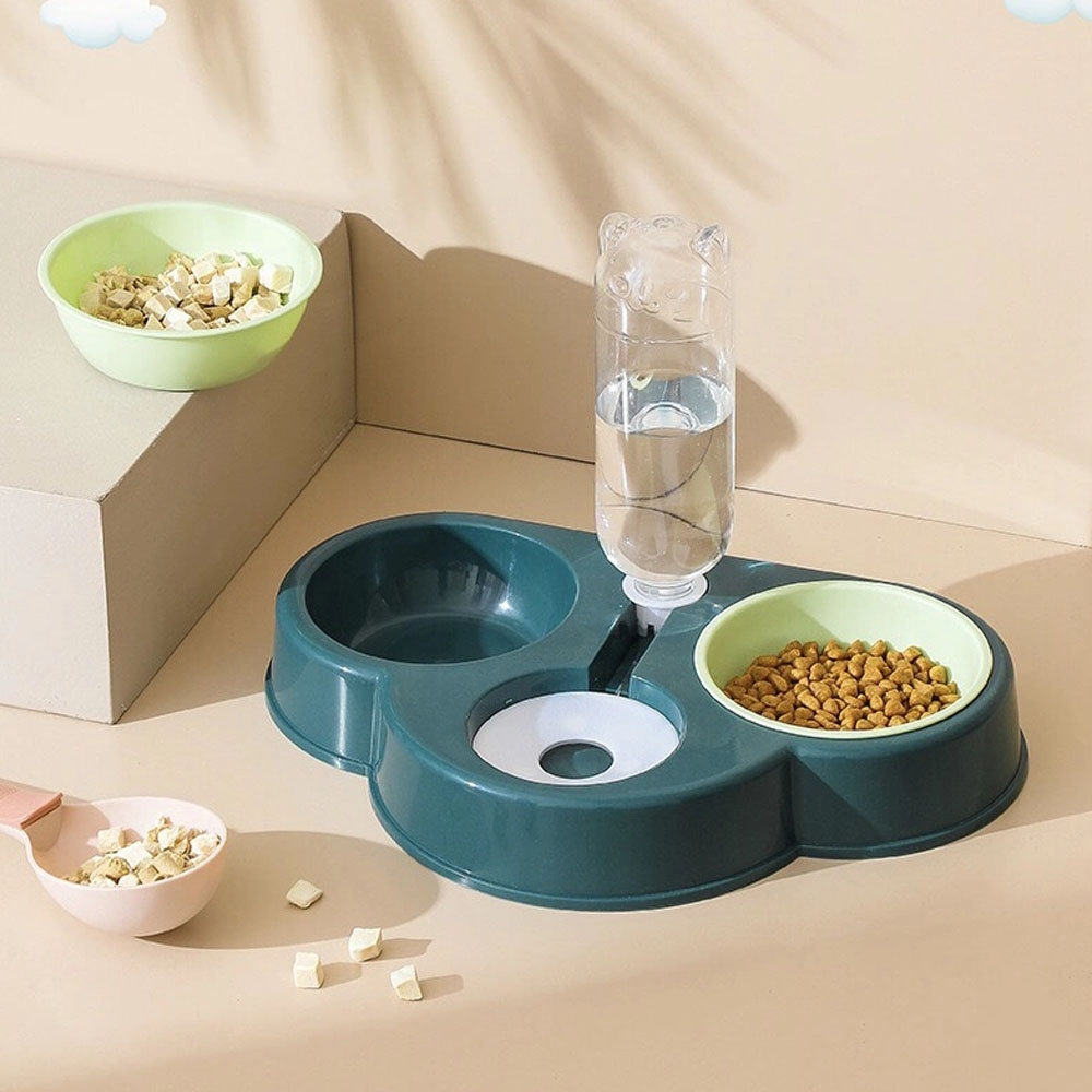 Bát Ăn Chó Mèo Kèm 2 Chén Nhựa Và Bình Nước Tự Động - Yonapetshop