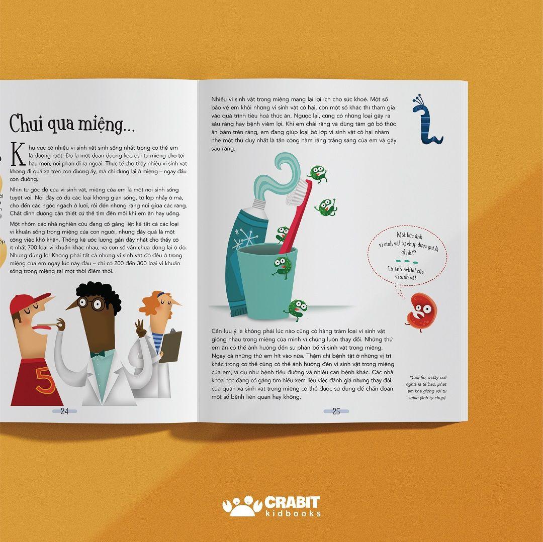 Với góc nhìn mới lạ “chúng ta đang sở hữu một cơ thể của vi sinh vật thì đúng hơn là một cơ thể người”, cuốn sách sẽ cho các bé thấy thế giới vi sinh vật mới sống động, gần gũi làm sao. Trẻ sẽ biết về đặc điểm của 6 vi sinh vật phổ biến nhất, vi sinh vật nào là bạn tốt hay kẻ xấu,