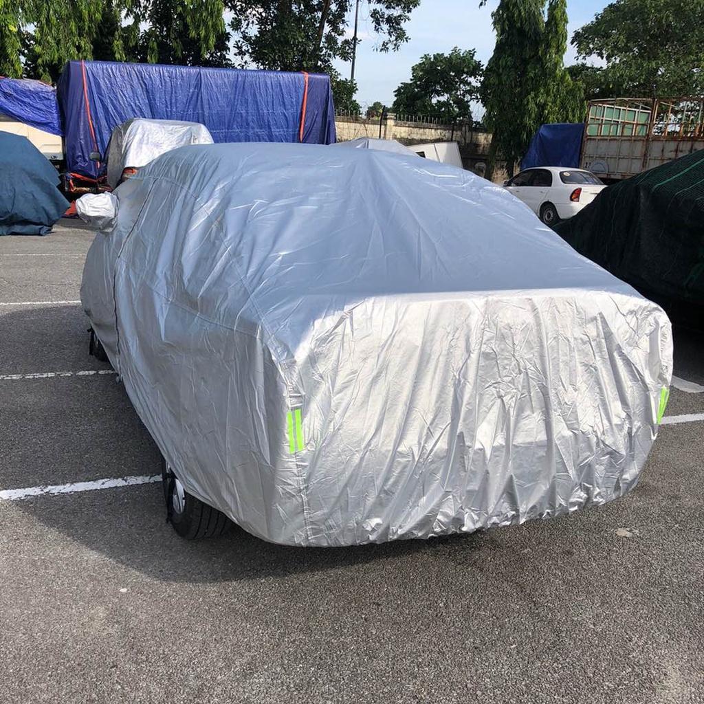 - Bạt phủ ô tô loại tốt, mặt ngoài tráng bạc 8D chống nóng, chống cháy, chống mưa và dễ lau chùi!