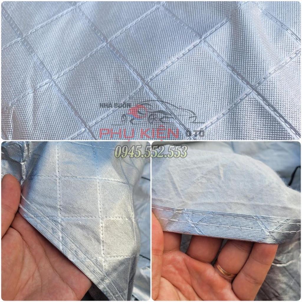 Bạt phủ xe ô tô 7 chỗ 3 lớp tráng nhôm cách nhiệt, chống nóng, chống thấm, chống bụi bẩn - Bạt phủ xe có mặt ngoài là chất liệu vải PEVA tráng nhôm phản