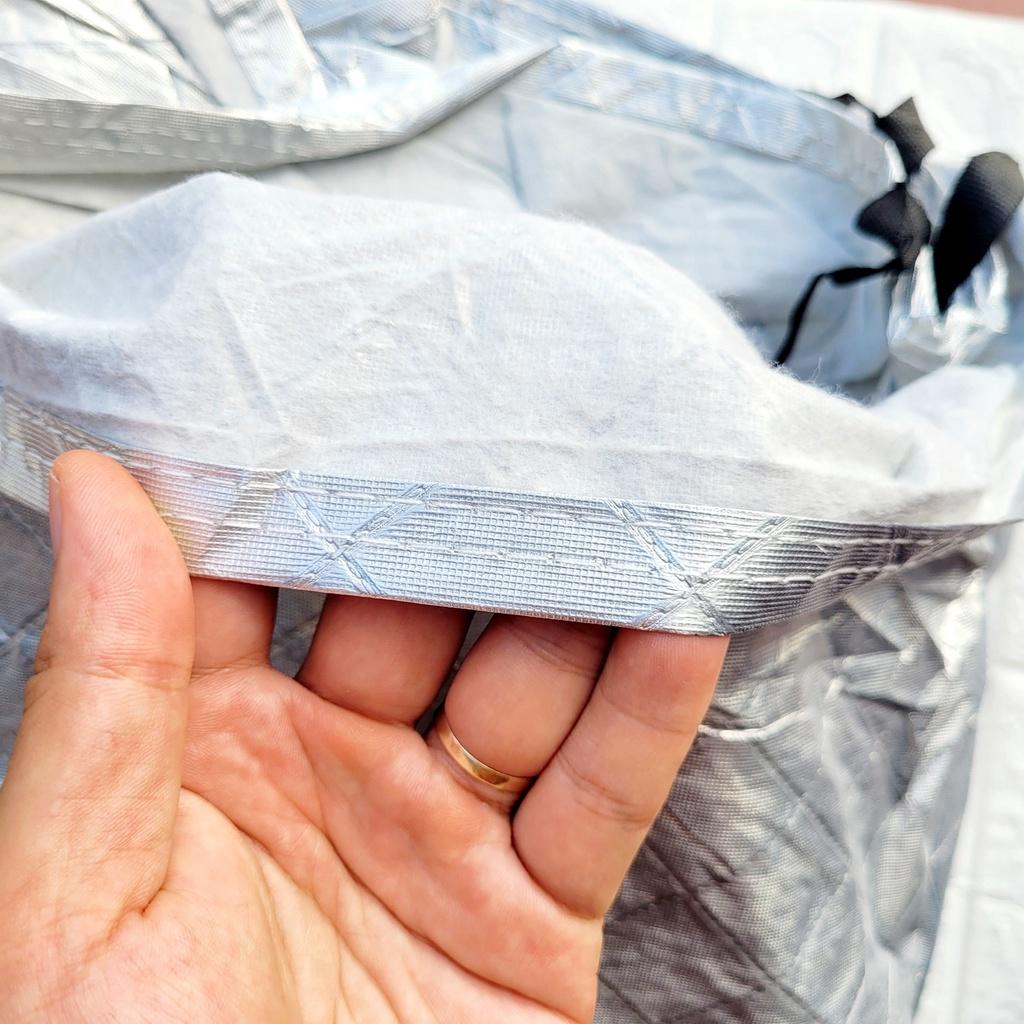 Bạt phủ xe ô tô bán tải 3 lớp tráng nhôm cách nhiệt, chống nóng, chống thấm, chống bụi bẩn - Bạt phủ xe có mặt ngoài là chất liệu vải PEVA tráng nhôm phản
