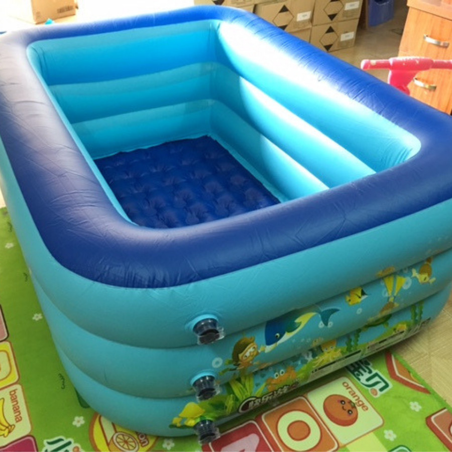 Hồ bơi thiết kế lớn có thể cho 3 bé cùng bơi Chất liệu pvc an toàn Đáy hồ bơm hơi ngồi êm ái Hồ cao 3 tầng
