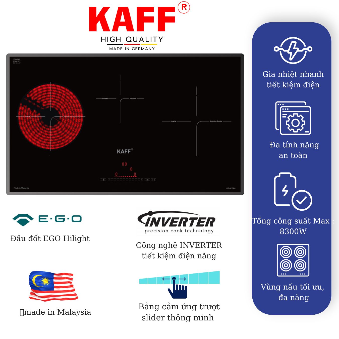 Bếp điện từ thường xuyên ra mắt với nhiều mẫu mã mới nhằm tạo ra nhiều sự lựa chọn hơn cho khách hàng . Vì thế, với nhiều kiểu dáng, thiết kế cùng tích hợp nhiều tính năng nấu vượt trội, làm cho người tiêu dùng khó khăn hơn trong việc chọn mua cho gia đình mình một chiếc bếp điện từ ưng ý. Thấu hiểu được nỗi lo của khách hàng, KAFF đã tìm hiểu rất kỹ và giới thiệu đến gia đình mình sản phẩm Bếp điện từ kết hợp KAFF KF- IC79H một thiết kế hoàn toàn mới cùng những tính năng thông minh, thiết kế châu Âu hứa hẹn sẽ mang lại nhiều tiện ích hơn với giá thành hợp lý nhất trên thị trường bếp nhập khẩu hiện nay.