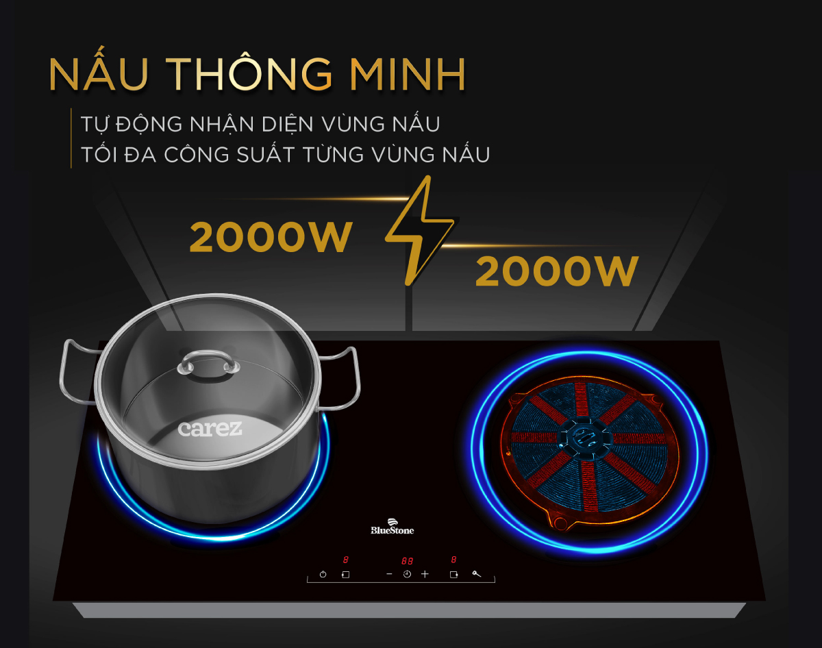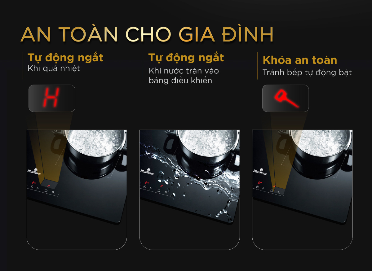 Chế độ an toàn: Khóa trẻ em, tự động nhận diện nồi chảo và bảo vệ quá nhiệt.