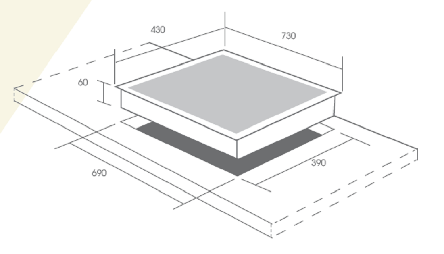 • Kích thước khoét đá: 690x390mm