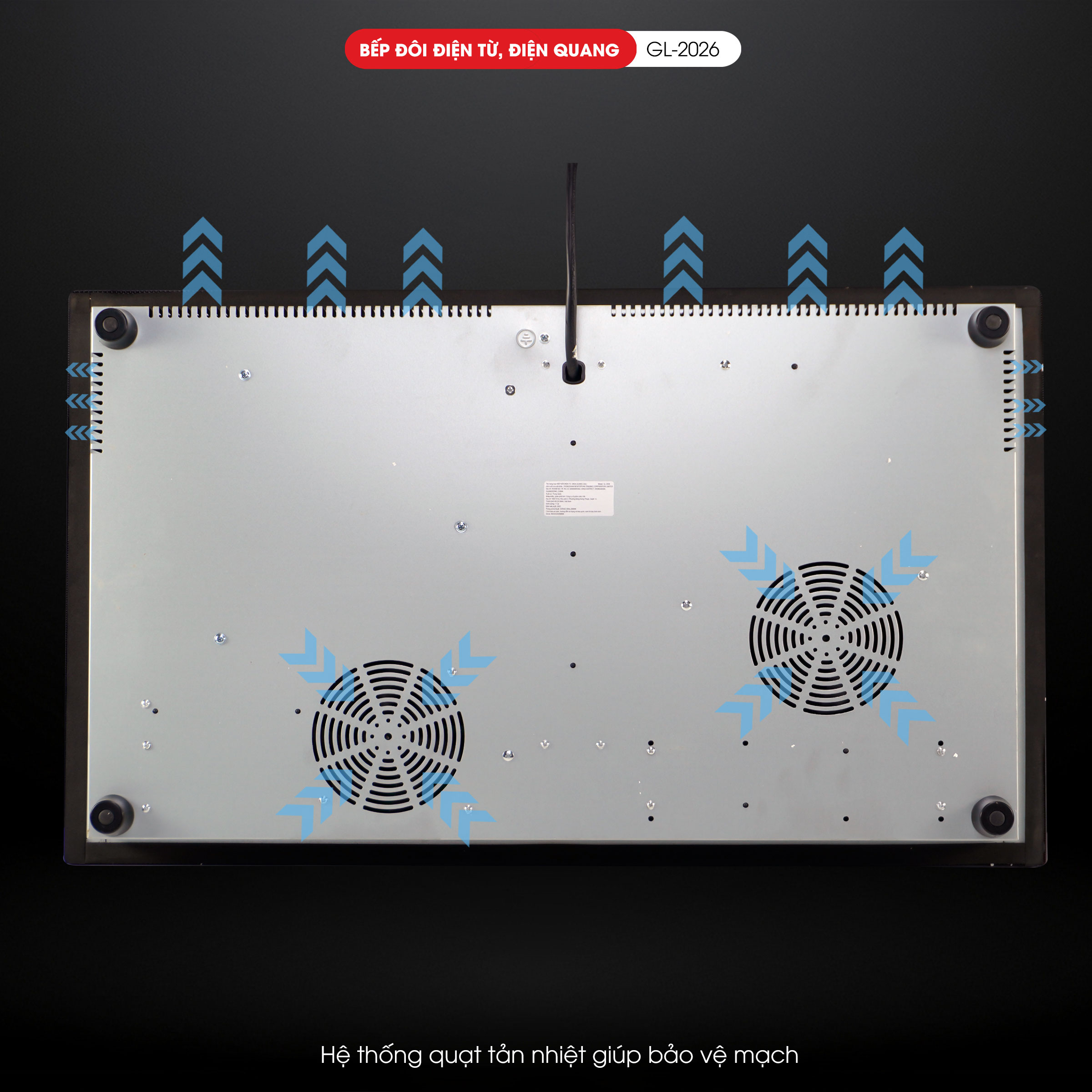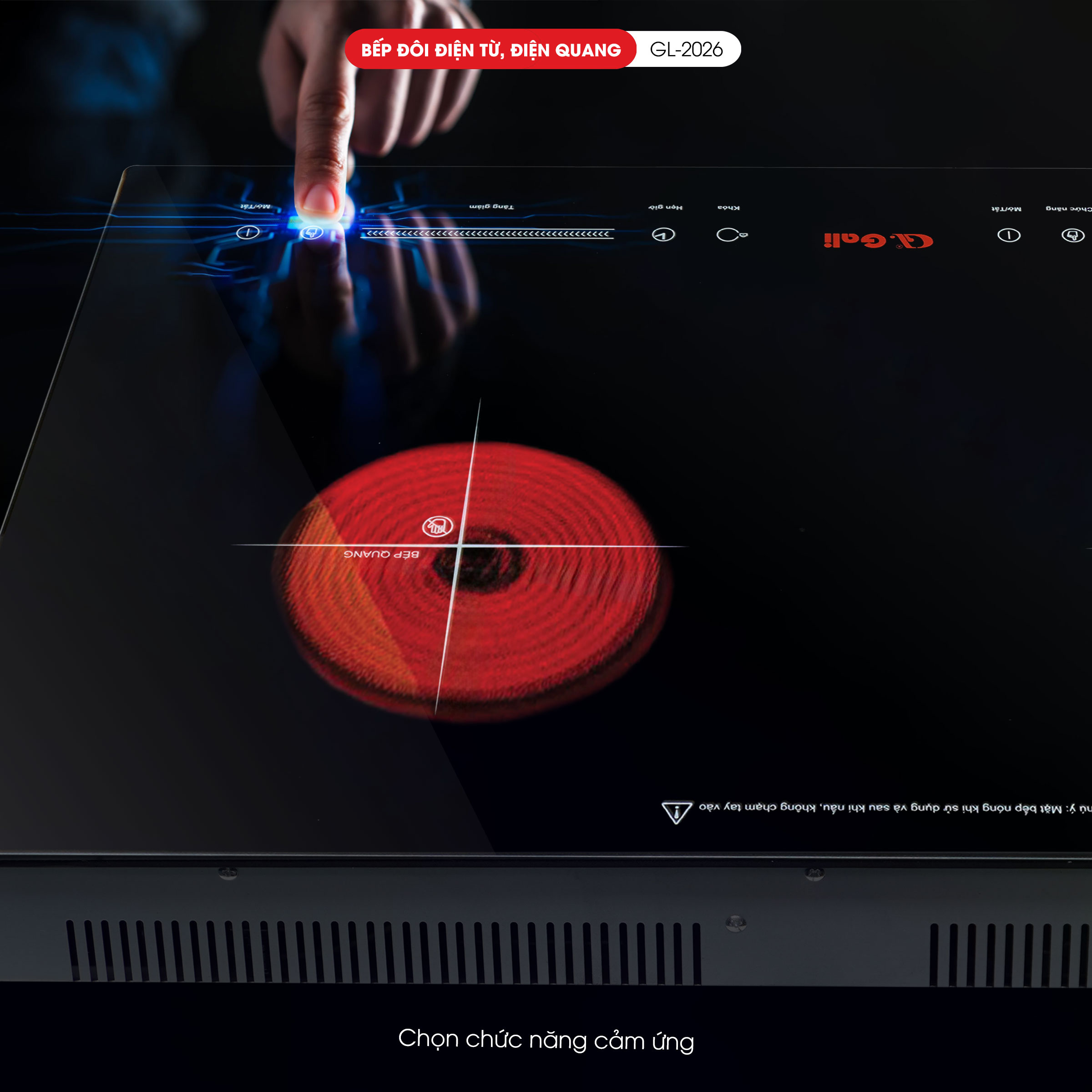 Bếp đôi điện từ, bếp quang của công ty Gali VN là một sản phẩm đỉnh cao với thiết kế hiện đại và tính năng thông minh, hứa hẹn mang đến cho gia đình của bạn trải nghiệm nấu ăn hoàn hảo và tiết kiệm thời gian. Với nhiều điểm nổi bật, lợi ích và tính năng độc đáo, sản phẩm này không chỉ đáp ứng nhu cầu nấu ăn hàng ngày mà còn nâng cao phong cách sống của bạn. Hãy cùng chúng tôi khám phá những điểm mạnh của bếp đôi điện từ, bếp quang Gali.     - Bếp đôi điện từ Gali kiểu dáng sang trọng, hiện đại, gọn nhẹ, dễ dàng sử dụng. - Bếp thiết kế 2in1 đặt âm hoặc nổi đều được.     - Bếp điện đôi Gali sử dụng điện áp 220V/50Hz/ 3600W - Bếp đôi Gali điều chỉnh nhiệt độ, công suất và thời gian theo nhu cầu. Chọn chức năng bằng phím cảm ứng tiện lợi chỉ cần vuốt nhẹ.     - Bếp Gali hiển thị nhiệt độ, công suất bằng màn hình led giúp quan sát và kiểm soát khi nấu. - Đặc biệt với bếp quang Gali không kén nồi, dùng tất cả các loại nồi đáy bằng. Bếp từ Gali sử dụng với các loại nồi có đáy nhiễm từ - Bếp thiết kế khóa an toàn cho em bé khi sử dụng.     - Mặt bếp điện Gali bằng kính thủy tinh loại dày chịu nhiệt, lực. Tránh trầy xước và dễ dàng vệ sinh sau mỗi lần sử dụng. - Bếp điện đôi Gali cấu tạo đĩa từ và dây dẫn điện 100% bằng đồng giúp gia tăng tuổi thọ sản phẩm. - Thân bếp điện Gali bằng kim loại không bị nứt bể khi sử dụng, bền bỉ theo thời gian     Sản phẩm tham khảo bếp đôi điện từ Gali model 2025: Điện áp 220V/50Hz/3600WGian Hàng Gali Chính Hãng cam kết: