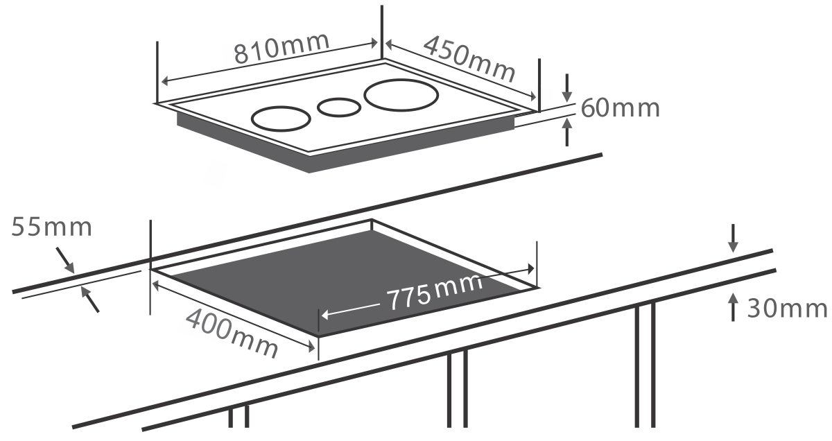 Kích thước khoét lỗ: 775 x 400mm