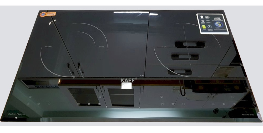 BẾP ĐIỆN TỪ KAFF KF-073IC | NHẬP KHẨU NGUYÊN CHIẾC TỪ MALAYSIA | THIẾT KẾ SANG TRỌNG | HỆ ĐIỀU KHIỂN CẢM ỨNG LINH HOẠT | AN TOÀN, BỀN BỈ VÀ TIẾT KIỆM ĐIỆN NĂNG   Bếp điện từ Kaff KF-073IC sử dụng mặt kính Crystal sản xuất tại Malaysia, mặt kính được làm từ chất liệu gốm thủy tinh có khả năng chịu nhiệt lên đến 1000°C, kháng sốc 750°C. Bề mặt kính chịu nóng lạnh cũng như sự thay đổi đột ngột của nhiệt độ. Độ giãn nở vì nhiệt thấp nên bếp hoạt động rất hiệu quả và cách nhiệt. Mặt bếp tản nhiệt nhanh và được cách điện an toàn với các linh kiện điện tử bên trong thân. Bạn có thể yên tâm sử dụng mà không lo bị bỏng hay điện giật.   Đây là mặt kính chuyên dụng dành cho bếp điện từ, là một loại kính có chất lượng cao, rất cứng, bền và có nhiều đặc điểm nổi trội như: khả năng chịu nhiệt, khả năng chống trầy xước và chống va đập Mặt kính gồm các thấu kính hội tụ, truyền nhiệt từ bếp lên đáy nồi theo phương thẳng đứng, không thất thoát nhiệt ra môi trường. Mặt kính màu xám liền nguyên khối, an toàn, thẩm mỹ và tiện trong việc vệ sinh, lau chùi.   Bếp điện từ Kaff KF-073IC gồm 2 vùng nấu với tổng công suất 4200W, vùng nấu từ trái có công suất là 2000W khi kích hoạt tính năng nấu nhanh Booster công suất lên tới 2400W, vùng nấu hồng ngoại phải trang bị mâm nhiệt cao cấp E.G.O Hilight với 02 vòng nhiệt có công suất tối đa 2200W. Chức năng Booster nấu siêu nhanh, tuy nhiên thời gian tối đa mặc định dùng chức năng này là 10 phút / lần tránh quá tải. Chỉ trong chốc lát sau khi kích hoạt tính năng này, nhiệt lượng trên vùng nấu từ tăng lên công suất tương đương với mức nhiệt lượng lớn nhất. Do đó, các món ăn được nấu chín nhanh hơn, tiết kiệm thời gian vào bếp cho chị em nội trợ.   Bếp điện từ Kaff KF-073ICđược trang bị với công nghệ Inverter thông minh vượt trội giúp làm giảm lượng tiêu thụ điện của các sản phẩm có sử dụng lõi từ của bếp từ. Ngoài ra công nghệ Inverter còn giúp bếp từ điều chỉnh mức công suất phù hợp để không làm tiêu thụ nhiều điện năng. Bếp điện từ Kaff KF-073IC với cảm biến thông minh sẽ cố định công suất tiêu thụ điện khi đun nấu, không bật tắt liên tục như các bếp từ thông thường khác (tự động điều chỉnh liên tục để đảm bảo mức nhiệt tương đương bằng với con số hiển thị trên bàn điều khiển).   Bạn có thể tận dụng các loại xoong, nồi vì bếp điện không kén nồi, phù hợp với nhiều kích cỡ. Ưu điểm của bếp điện hơn hẳn các sản phẩm khác là có thể nướng trực tiếp lên bề mặt. Nướng thịt, rau củ, hải sản thơm ngon. Bạn nên vệ sinh sạch sẽ mặt bếp sau khi sử dụng. Hoạt động của bếp điện là truyền nhiệt lên mặt kính rồi mới lên đáy nồi nên mặt kính bếp rất nóng. Sau khi nấu, bạn có thể tận dụng hâm nóng thức ăn trên bếp. Ngược lại với vùng điện, bếp từ chỉ hơi nóng vùng nấu. Hiệu suất nấu lên tới 90%. Chức năng nhận diện vùng nấu chỉ sinh nhiệt vùng đáy nồi, tránh nồi thất thoát nhiệt ra ngoài.   Bếp điện từ Kaff KF-073IC được tích hợp chức năng tự nhận diện vùng nấu, khi ta đặt nồi lên 1 trong 2 vùng nấu sau đó ấn nút khởi động bếp sau thời gian 1-2 giây bếp sẽ tự động tìm vùng nấu đã có nồi, ta chỉ việc điều chỉnh mức công suất to nhỏ theo ý muốn mà không phải thao tác chọn vùng nấu như bếp thông thường. Công nghệ Inverter được áp dụng trên Bếp điện từ Kaff KF-073IC có khả năng phản ứng thay đổi công suất theo điều khiển ngay tức thì, khi người dùng điều chỉnh tăng giảm nhiệt độ đun nấu, bếp điều chỉnh thay đổi tức thì về mức nhiệt độ mong muốn.   Bếp điện từ Kaff KF-073IC sử dụng bảng điều khiển cảm ứng Touch Control hiện đại với 9 cấp độ công suất nhiệt độ khác nhau, điều khiển dễ dàng bằng một ngón tay, mọi chương trình nấu đều được hiển thị qua đèn Led sắc nét để bạn điều chỉnh cho phù hợp với các món ăn. Bếp còn được trang bị thêm các chức năng nấu thông minh như tạm dừng và hâm nóng.   Chức năng tạm dừng và ghi nhớ chương trình Pause & Recall: Tạm dừng bếp khi đang đun nấu, sau đó ta tiếp tục đun nấu trở lại bằng việc nhấn vào thanh trượt Slider hoặc phím Pause, bếp sẽ hoạt động trở lại đúng cài đặt trước đó khi được khởi chạy trở lại.   Chức năng ủ ấm “hâm nóng”: Với công nghệ biến tần Inverter vượt trội, Bếp điện từ Kaff KF-073IC có khả năng ủ ấm ở nhiệt độ nhất định, chức năng ủ ấm được lập trình giữ mức nhiệt độ ổn định giúp chúng ta duy trì nhiệt cho thức ăn luôn nóng mà không bị nguội đi phải đun lại nhiều lần làm giảm chất dinh dưỡng trong thức ăn, đặc biệt về mùa đông thời tiết lạnh.   Phần thân vỏ của Bếp điện từ Kaff KF-073IC sử dụng chất liệu thép chống rỉ. Đây là chất liệu có khả năng ch