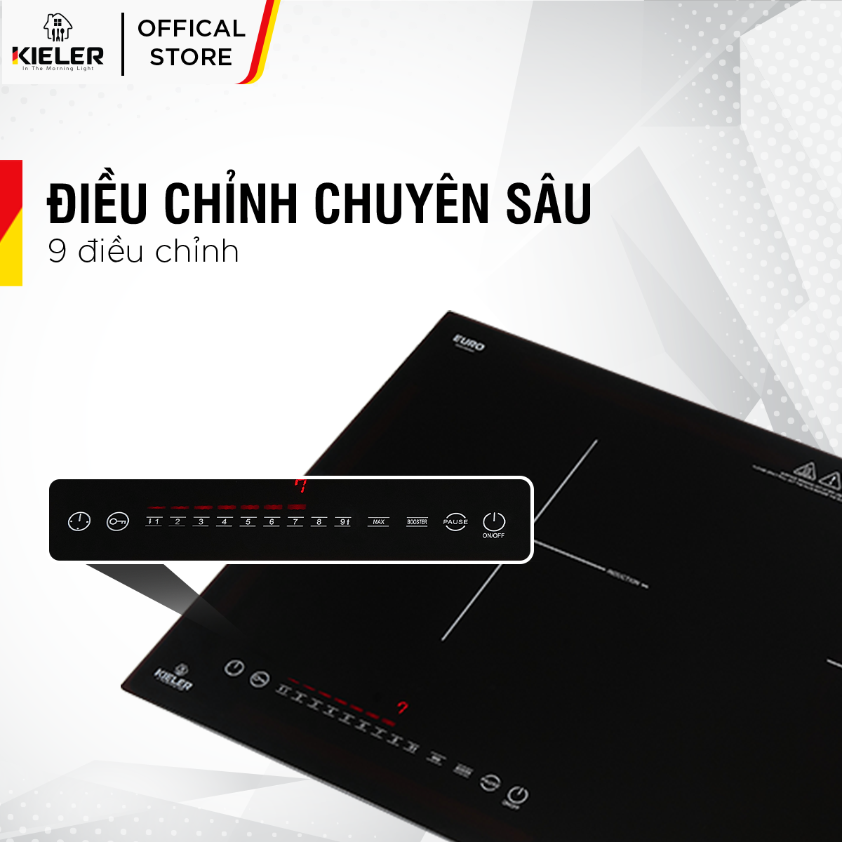 Bếp điện từ kết hợp: 01 điện + 01 từ Mặt kính Shott Ceran Made in Germany siêu bền, chịu lực chịu sốc nhiệt Đầu đốt EGO Made in Germany Chức năng Booster cực nhanh