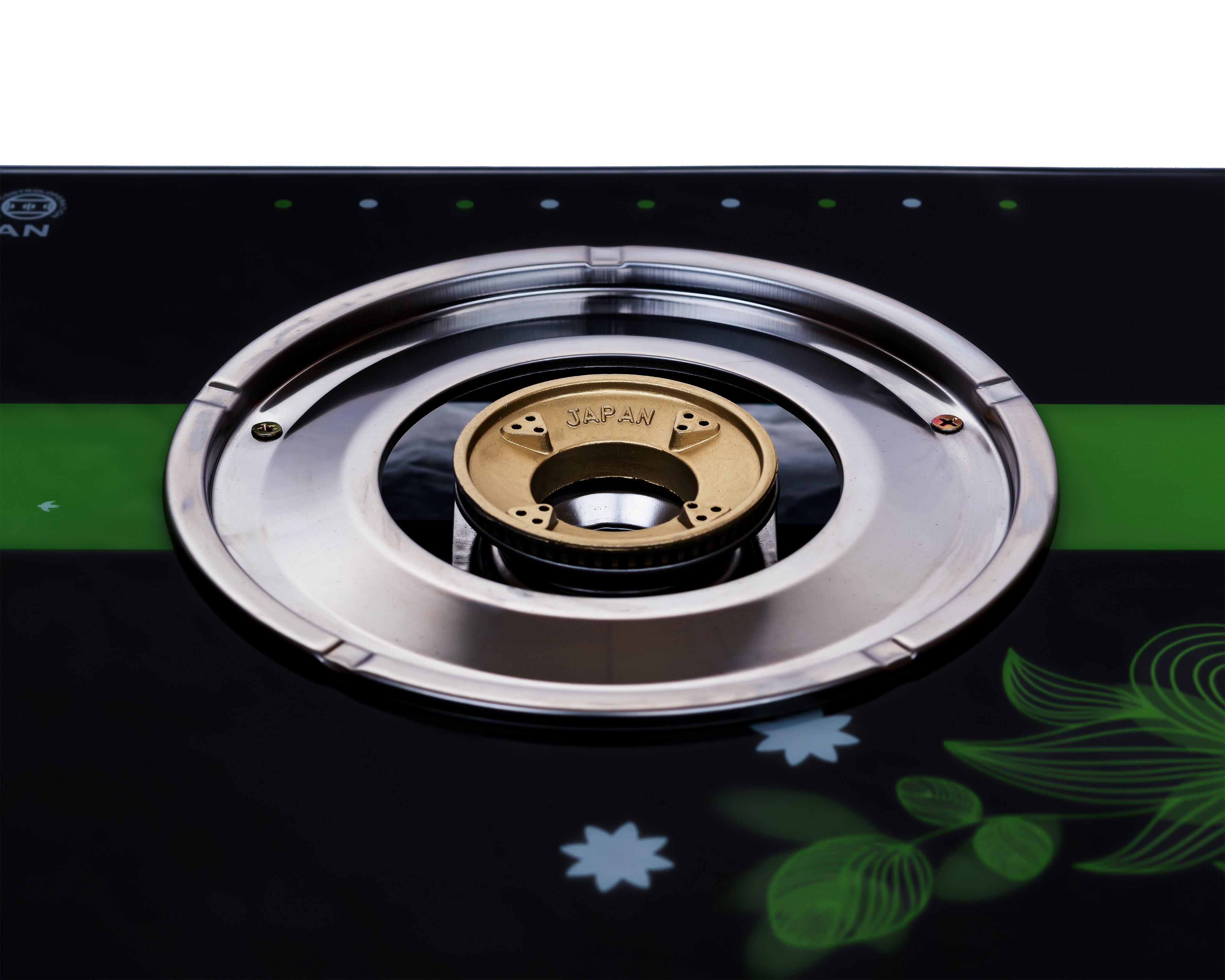 * Mặt kiếng cao cấp chịu lực, chịu nhiệt, thiết kế hoa văn sang trọng; - Thân bếp bằng inox, cao 100 mm; - Kiềng thép sơn tĩnh điện, có chắn gió; - Điếu loe
