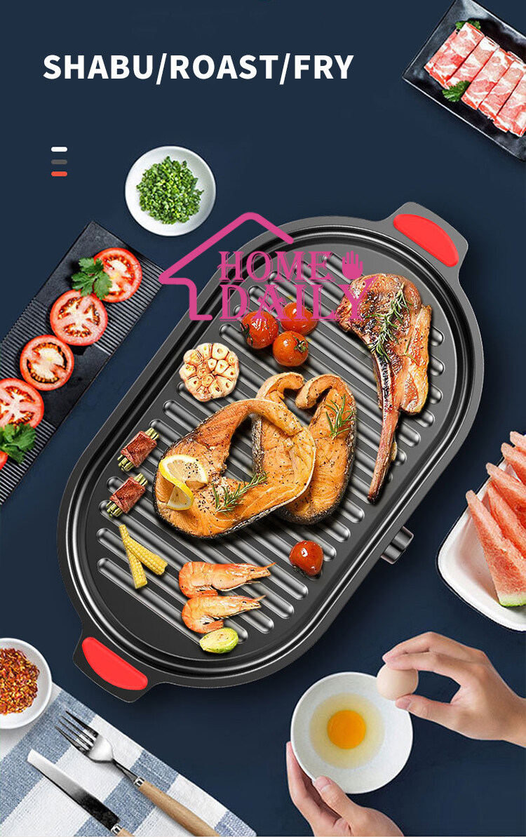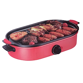 THỐNG SỐ KĨ THUẬT Công suất 1800W Điện áp 220VAC Chất liệu Nhôm phun sơn chống dính Kích thước sản phẩm 565x320x80mm Trọng lượng sản phẩm 2.2 kg Nồi đa năng 2 trong 1: Nướng