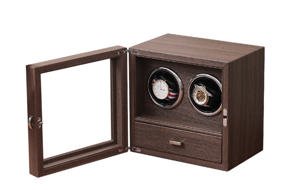 Hộp xoay 2 đồng hồ Saike kèm ngăn đựng trang sức ✿ Chất liệu: Thân gỗ MDF dán veneer vân gỗ tần bì, củ gối bằng mút cao su cao cấp đàn hồi tốt ✿ Thiết kế mới nhất của hãng Saike cuối năm 2024 có cảm biến ánh sáng để tiết kiệm điện và nâng cao tuổi thọ của động cơ. Đóng gói :