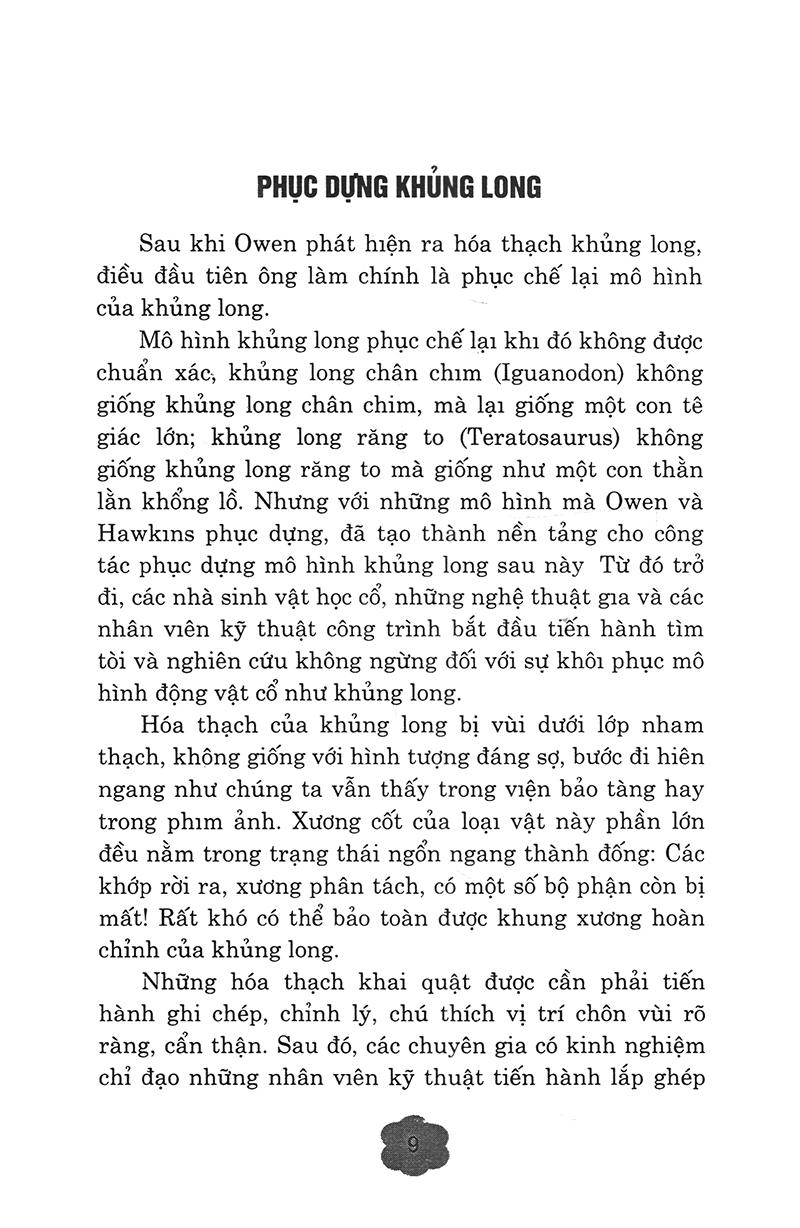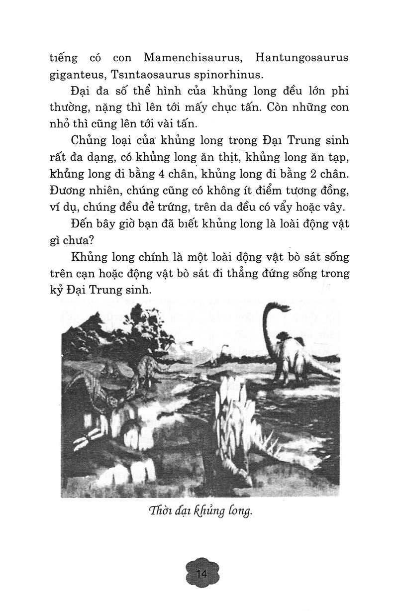 “Bí ẩn thế giới khủng long và những điều kỳ thú” là tài liệu giúp bạn đọc yêu thích khoa học tìm hiểu về loài động vật tiền sử này. Nội dung sách đi từ nguồn gốc tìm ra hóa thạch khủng long, sau đó các nhà khoa học đã tưởng tượng, phục chế ra hình dạng khủng long. Người đọc sẽ được lên cỗ máy thời gian, quay trở về thời tiền sử để tìm hiểu những chủng đa dạng của khủng long, tập tính sinh trưởng, tìm kiếm thức ăn, sống chung với đồng loại và sinh đẻ...