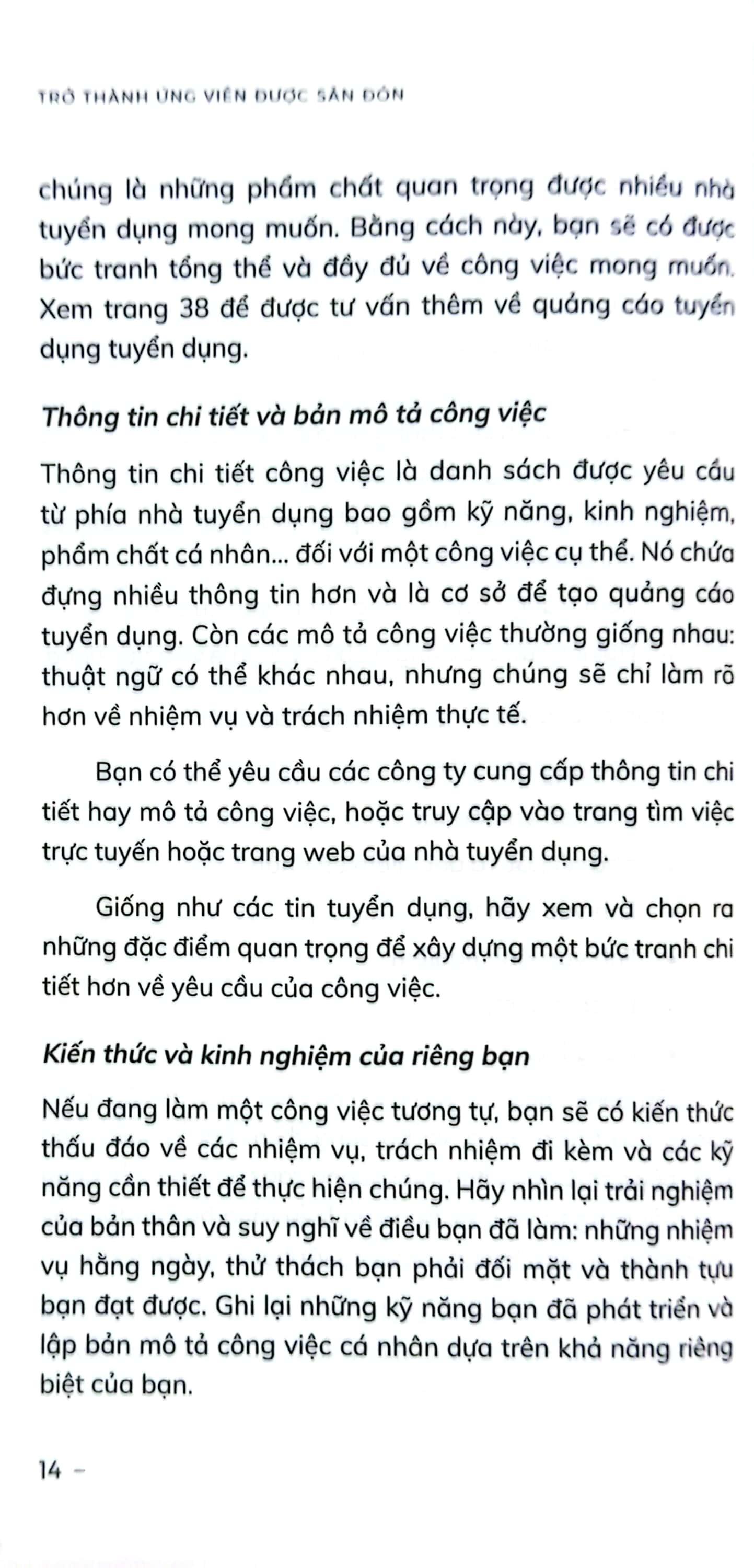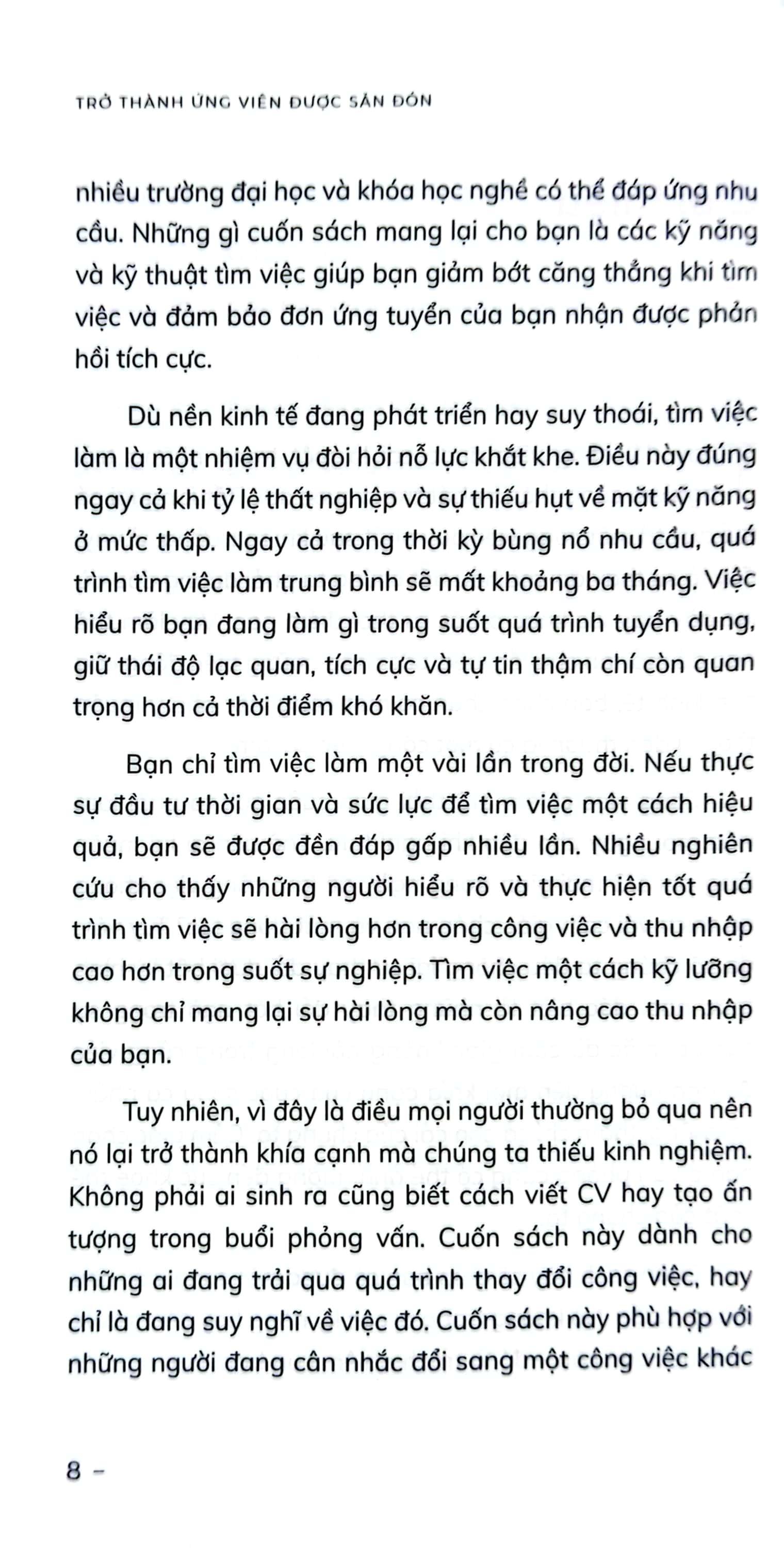 Cuốn sách này sẽ giúp bạn có được một công việc như mong muốn. Nó không trang bị các kỹ năng hay đào tạo về kỹ thuật bạn cần – đó là trách nhiệm của bạn, hơn nữa rất nhiều trường đại học và khóa học nghề có thể đáp ứng nhu cầu. Những gì cuốn sách mang lại cho bạn là các kỹ năng và kỹ thuật tìm việc giúp bạn giảm bớt căng thẳng khi tìm việc và đảm bảo đơn ứng tuyển của bạn nhận được phản hồi tích cực. Thông qua cuốn sách, bạn sẽ biết cách làm thế nào để: