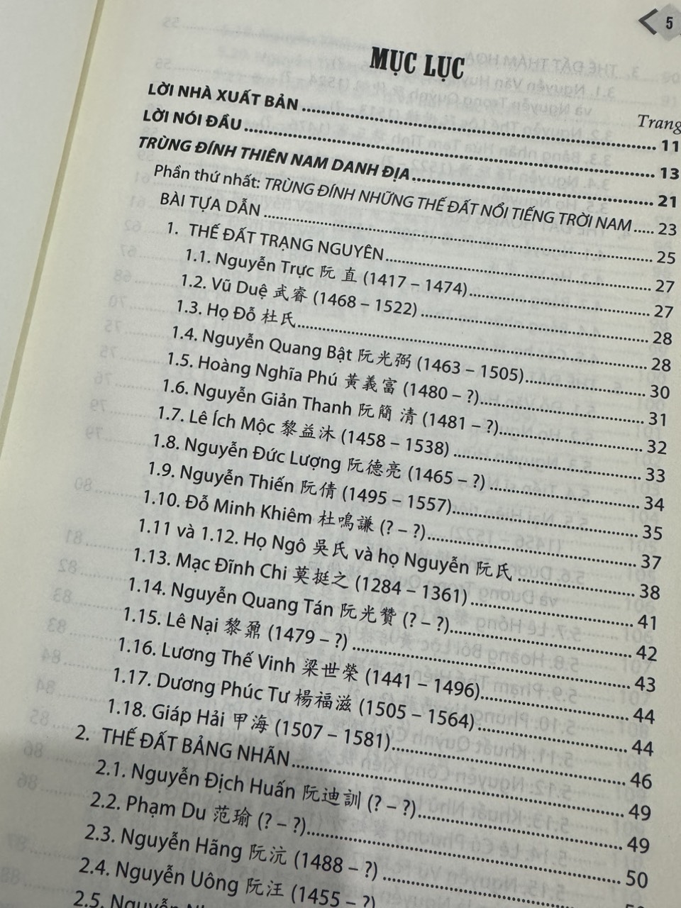 Tập 1, khảo cứu và giới thiệu tác phẩm Trùng đính thiên Nam danh địa, bản VHv.1927, viết bằng chữ Hán của tác giả Hoà Chính Tử (thế kỉ XVI – XVII), với hai nội dung: Một là, Trùng đính những thế đất nổi tiếng trời Nam, ghi về các thế đất phát về đường khoa bảng (những người đỗ đại khoa), trong đó có 18 thế đất thi đỗ Trạng nguyên, 7 thế đất thi đỗ Bảng nhãn, 5 thế đất thi đỗ Thám hoa, 5 thế đất thi đỗ Hoàng giáp và 91 thế đất thi đỗ Tiến sĩ. Đó là những thế đất nổi tiếng của các nhà khoa bảng thuộc về thời kì Trần, Hồ, Lê sơ, Mạc và Lê Trung hưng. Đây là những tư liệu lịch sử khi tìm hiểu về cuộc đất của tổ tiên hay dòng họ. Hai là, Địa lí biện hoặc tiệp hiểu, trình bày một số vấn đề lí luận về phong thuỷ, như: địa cục, thuỷ khẩu, long, huyệt, sa, thuỷ,;
