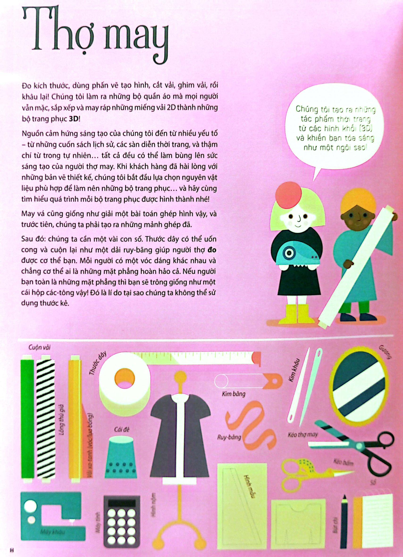 Chúng m.ình đừng vội nghĩ rằng Khoa học, Toán học chỉ gắn liền với lí thuyết khô khan, với hoạt động nghiên cứu nghiêm túc nhé. Thật ra, Khoa học và Toán học còn mang những “gương mặt” khác – cũng đầy tươi vui, đầy sức sống! Chẳng vậy mà mỗi cuốn sách khi đề cập khoảng 12 nghề nghiệp thì đều thể hiện được vai trò thực tiễn của chúng một cách vô cùng hấp dẫn, thuyết phục.