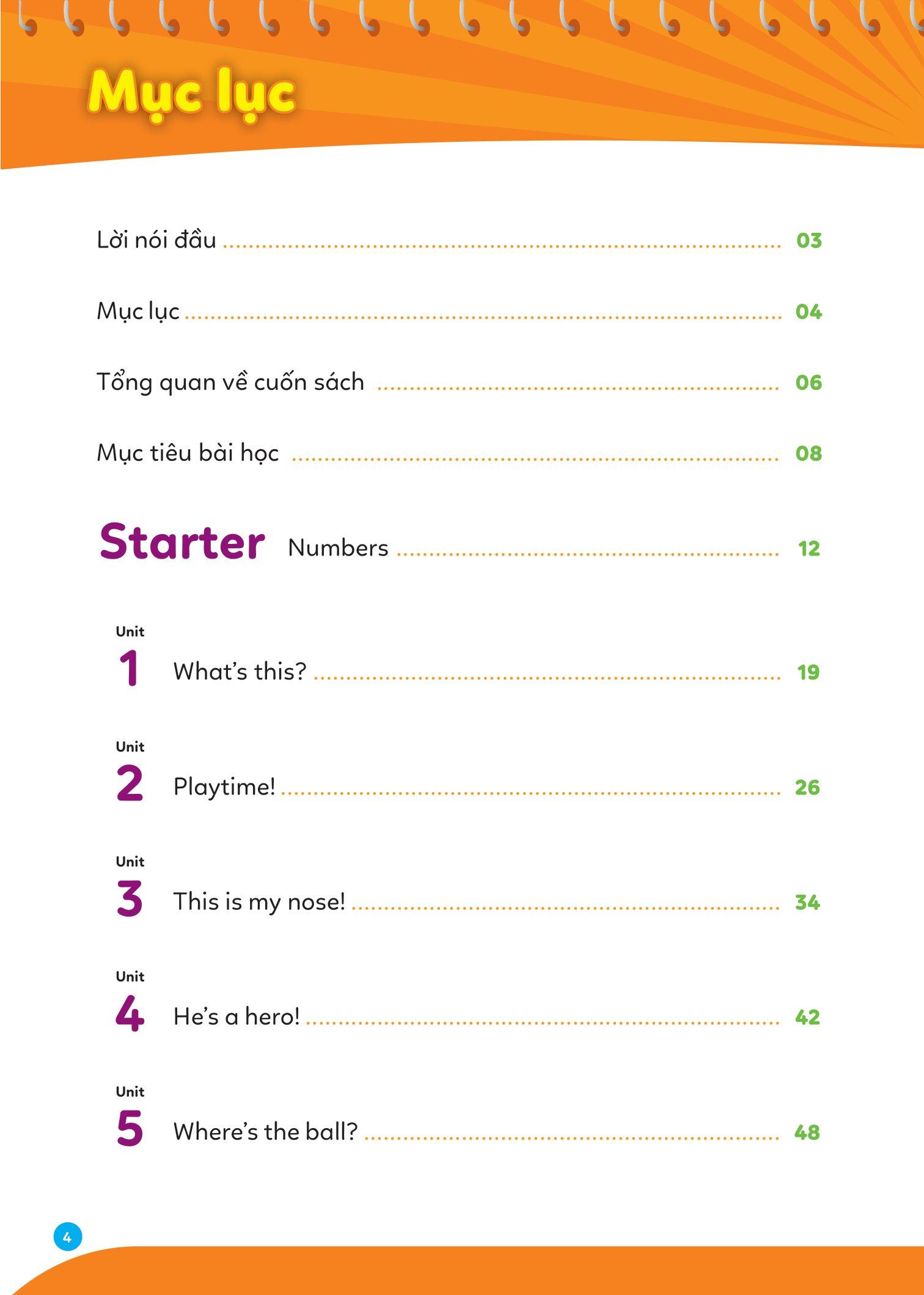 Mỗi cuốn gồm 9 đến 12 chủ đề thân thuộc với các em. Lồng ghép trong mỗi chủ đề chính là các kiến thức và bài tập tiếng Anh, mỗi bài học gồm các phần: