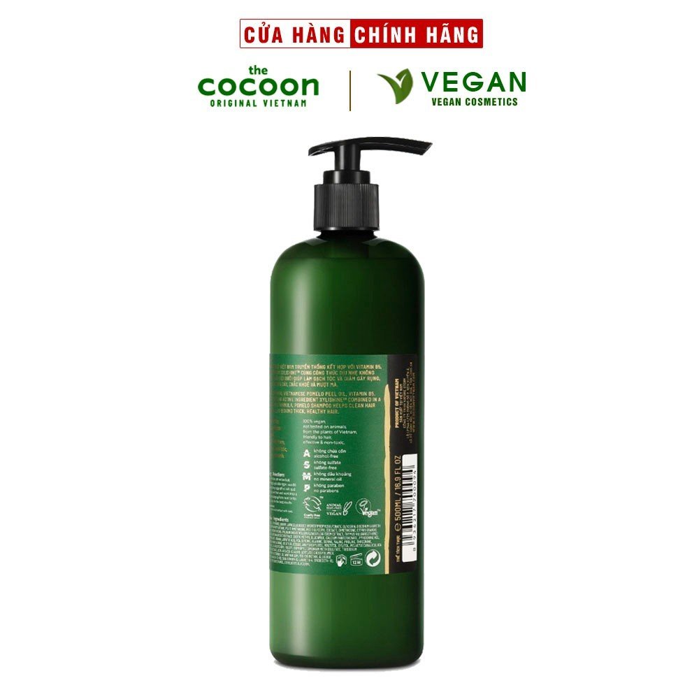Dầu gội bưởi Pomelo cocoon thuần chay chiết xuất Từ tinh dầu vỏ bưởi Việt Nam truyền thống kết hợp với vitamin B5, hoạt chất dưỡng ẩm Xylishine cùng công thức dịu nhẹ không chứa