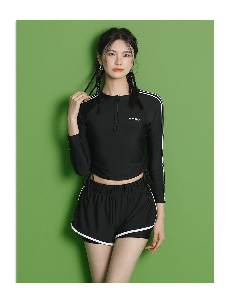 Set Đồ Bơi Nữ Rời Đùi Dài Tay Đi Biển Đi Bơi Chất liệu Polyester 95%, mật độ dệt vừa Áo có sẵn lớp đệm, hông áo có thể rút lên làm croptop cá tính