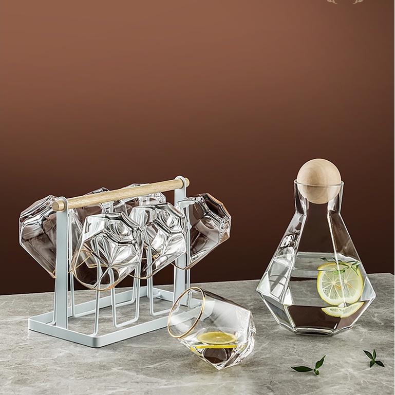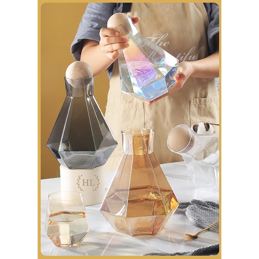 ✨BÌNH CỐC THỦY TINH DECOR NÚM GỖ | BỘ BÌNH CỐC THỦY TINH LỤC GIÁC PHONG CÁCH SCANDINAVIA NÚM GỖ