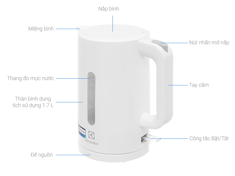 ✨Bình đun nước siêu tốc Electrolux E2EK1-100W 1.7L - Hàng chính hãng