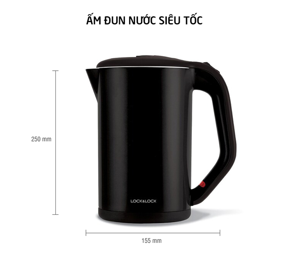 Bình Đun Siêu Tốc 2 Lớp Lock&Lock EJK738BLK (1.7L) - Kiểu dáng mới lạ và không kém phần hiện đại với vẻ ngoài sang trọng. Bình được hoạt động với công suất mạnh mẽ 1800W và trang bị nút bật màu đen sử dụng cực đơn giản. Dung tích bình lên đến 1.7L giúp bạn có đủ lượng nước để đáp ứng cho nhiều nhu cầu sử dụng khác nhau trong cuộc sống như pha mì, pha trà, cà phê