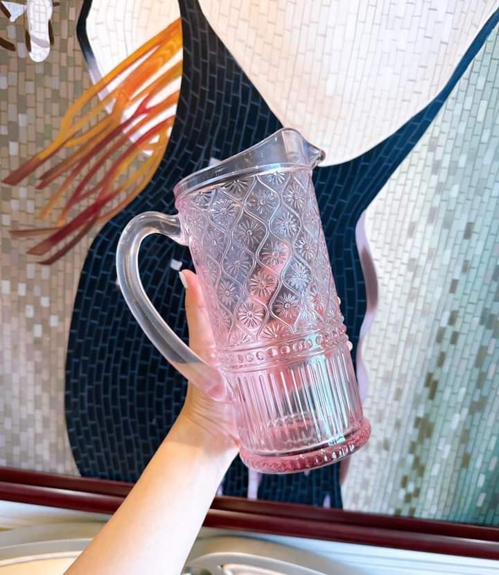 Bình Thuỷ Tinh Đựng Nước Quai Cầm Kim Cương EH1028 Glass Pitcher Diamond Shape Striped Jar 1300 ML