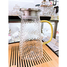 ✨BÌNH ĐỰNG NƯỚC THỦY TINH CHỊU NHIỆT CAO VÂN NHÁM TRẮNG TAY VÀNG
